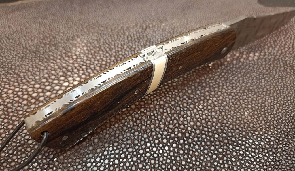 Ce couteau haut de gamme, bien ajusté, allie esthétique et performance, idéal pour les amateurs de beaux objets et de gastronomie.